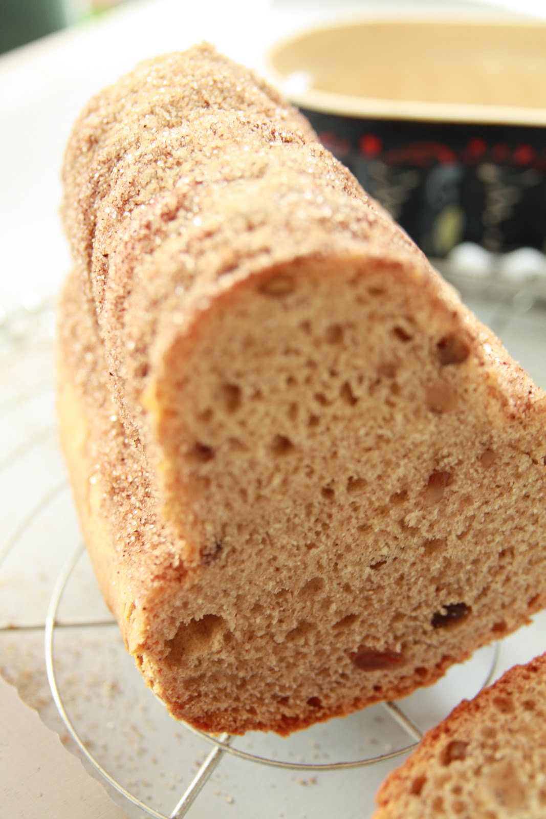Au sortir du four – attendre 10 minutes pour démouler puis badigeonner la brioche de beurre avant de la rouler dans un mélange égal de sucre et de cannelle en poudre.