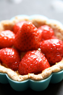 Version minute ! Un reste de pâte sablée, un fond de pâte de spéculoos et les fraises juste posées dessus