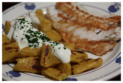 J’ai tenté les gnocchis  Loukoum : magiques 🙂 ce goût de courge dans des pâtes, je suis convaincue ! (servis cette fois-ci avec un filet de bar poêlé, quel moment de dégustation !)