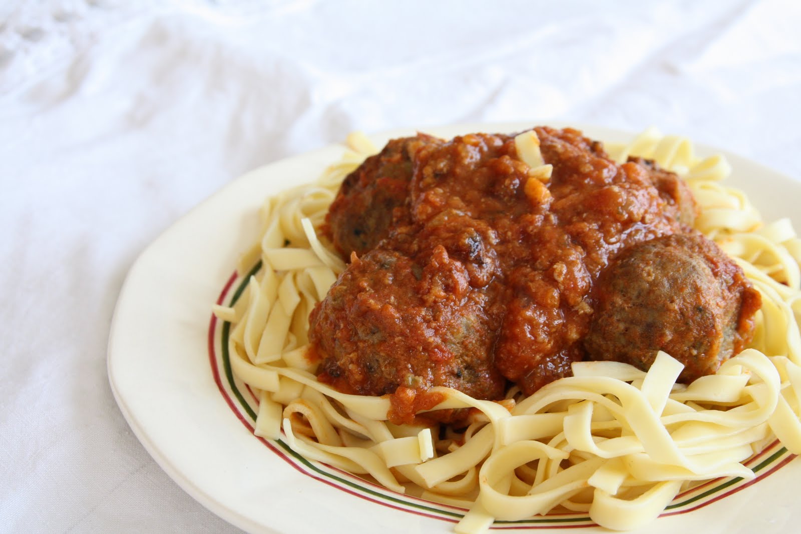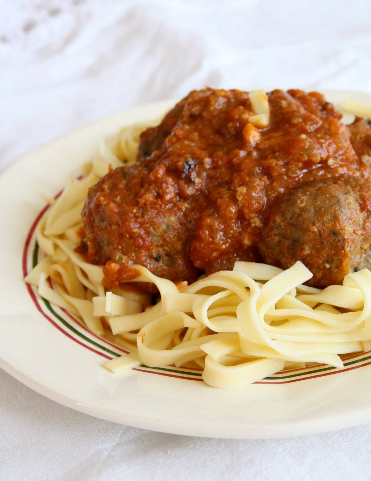 Mais il faut un beau plat pour sublimer une belle sauce, j’ai donc choisi d’agrémenter cela avec de jolies boulettes de viande bien assaisonnées, imprégnées de la sauce. Quelques tagliatelles fraîches et le tableau est achevé 🙂