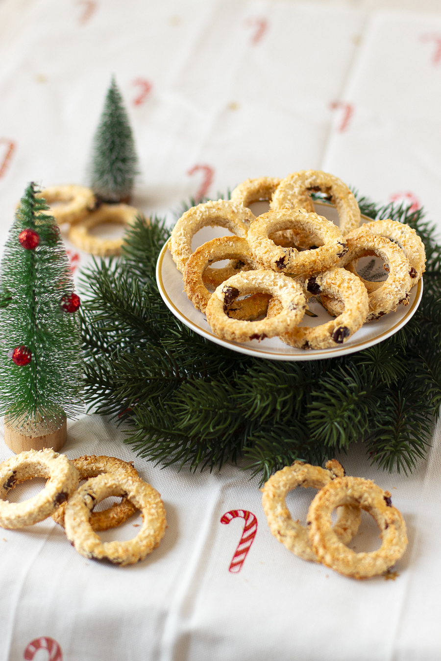 - Abaissez la pâte sur 1/2 centimètre d'épaisseur. Découpez à l'emporte-pièce pour obtenir des anneaux.