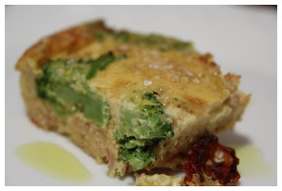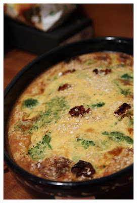 Versez le tout dans le plat et déposez les fleurettes de brocolis, puis les tomates séchées, selon vos goûts.