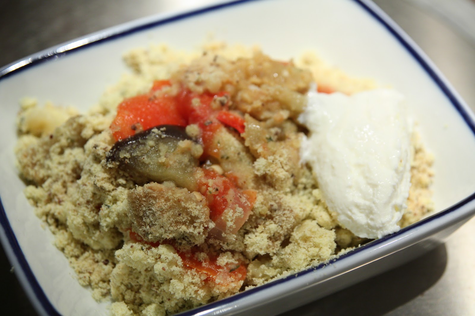 Crumble à l’italienne : légumes du soleil, pesto et maïs