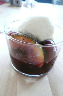 Soupe de cerises et figues aux épices à pain d’épice et glace pistache