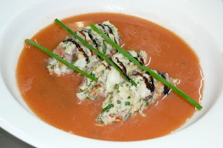 Rillettes de lieu jaune et gaspacho au piment d’espelette