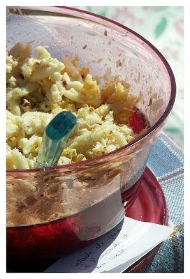 légumes-trempettes “que si j’avais eu le tupp pour moi toute seule je l’aurais vidé”, muffins salés aux graines de moutarde délicieusement croquants, craquers-coeur et tartinade courgette-chèvre, petites verrines , omelette courgettes-amandes (coup de coeur côté Flo), petit cake courgettes, terrine à se damner, soupe de melon, Houmouss … et salade de pâtes à l’amande, au crabe et à la mimolette extra vieille …