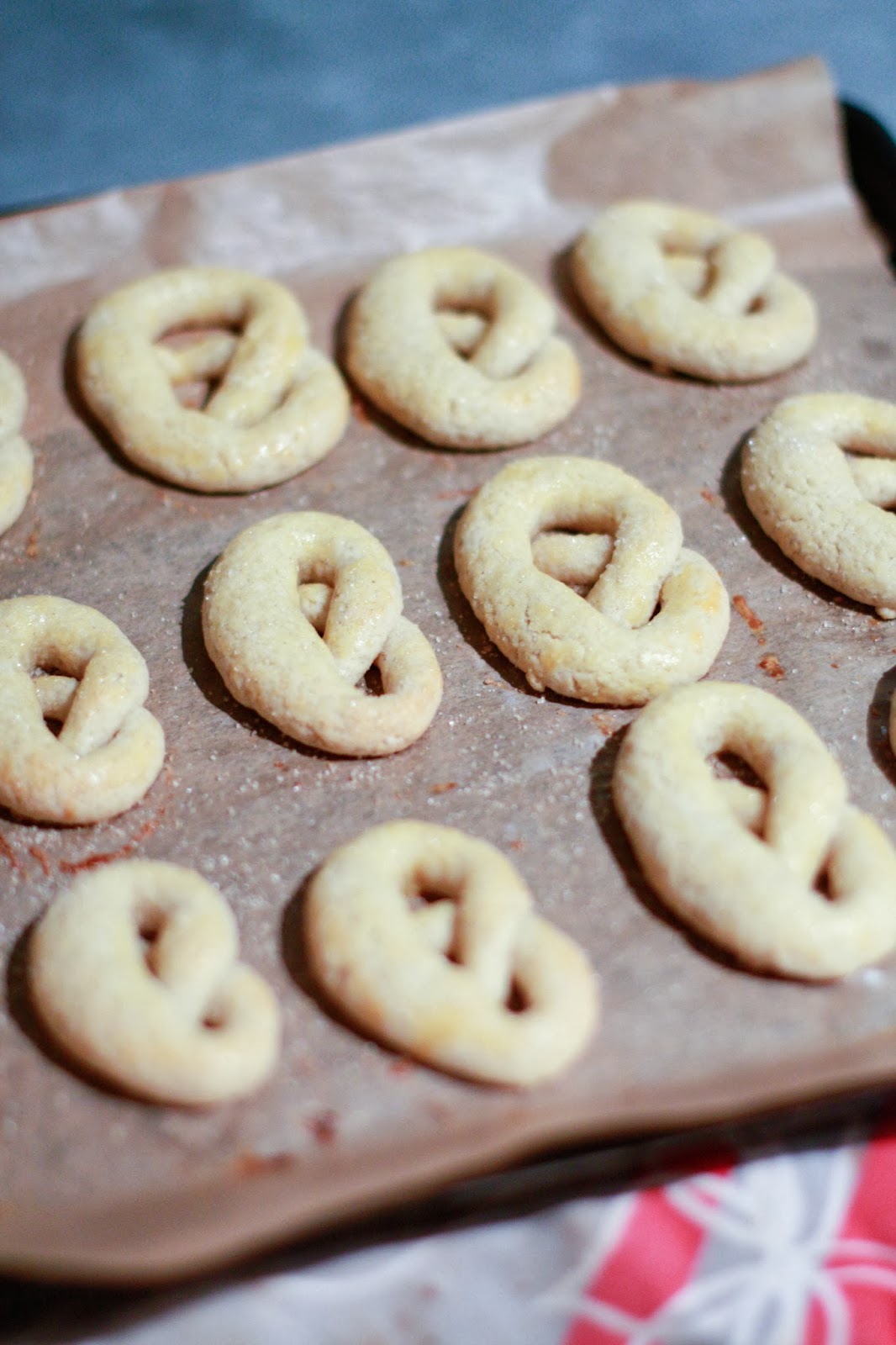 Mouiller très légèrement le milieu et former des bretzels en rabattant les extrémités, en les croisant et en les collant sur le milieu.