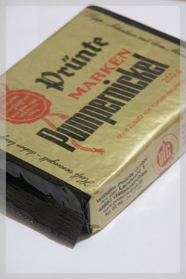 Avec le dit-sachet, j’ai aussi eu droit à ce beau paquet d’un pain que je mange trop peu souvent : du PUMPERNICKEL ! (pain noir au goût affirmé et très apprécié outre-Rhin notamment)
