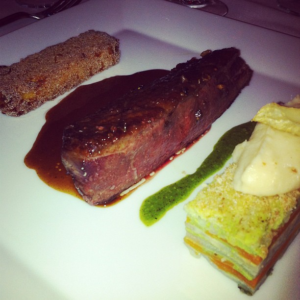 Magret de canard, miel épicé, pressé de légumes à l’estragon, polenta de maïs par le Cygne / Gundershoffen
