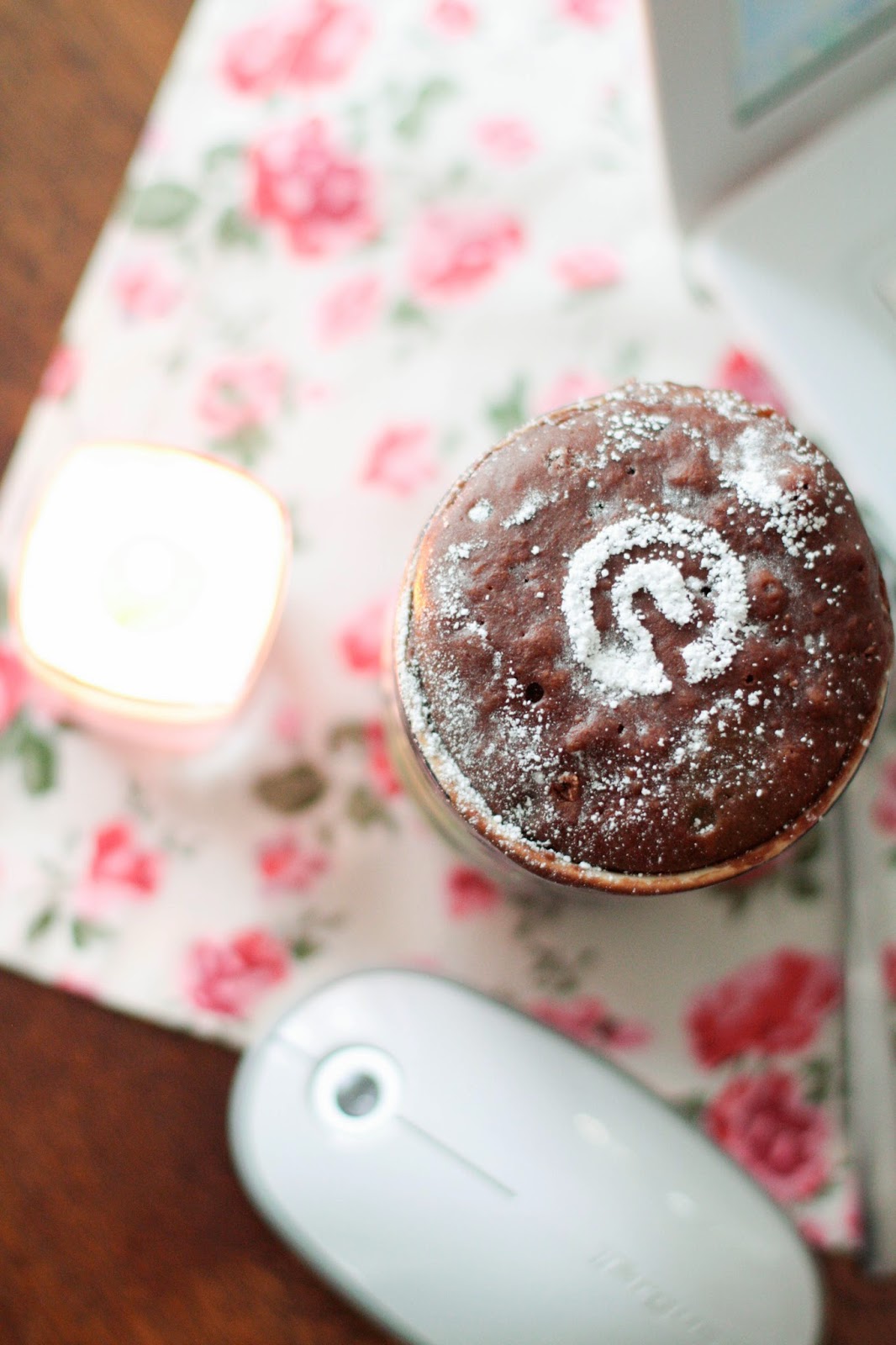 Et voici mon clin d’oeil à Pinterest (et au tableau Chocolat ^^), un mug cake bien chocolaté et incroyablement moelleux !