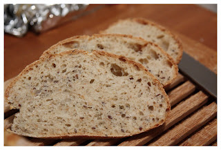 Je vous montre dans ce billet mon tout premier pain fait avec ce levain, un pain semi-complet aux graines, ou plutôt devrais-je dire un “monstre” de pain semi-complet aux graines !