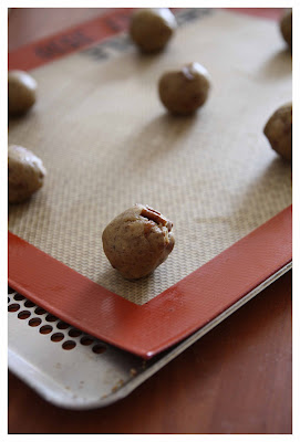 Formez des boules de pâte et les déposez sur votre plaque de cuisson recouverte de papier sulfurisé en les applatissant avec la main, car ils ne s’étaleront pas (choisir alors le degré “d’aplatissement” pour obtenir des cookies plus ou moins épais, plus ou moins grands).
