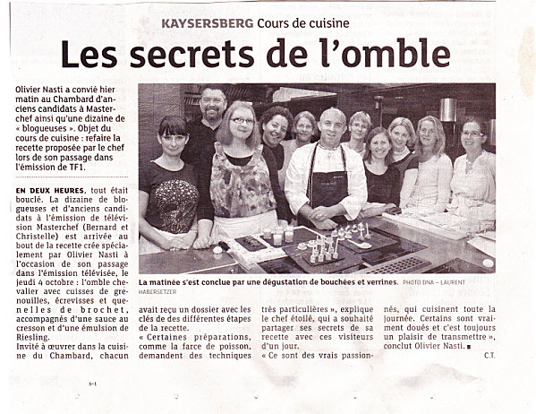 Invitée avec d’autres blogueuses culinaires à assister le chef Nasti à refaire sa recette présentée lors de l’émission Masterchef … waow. Au Chambard à Kaysersberg, re-waow.