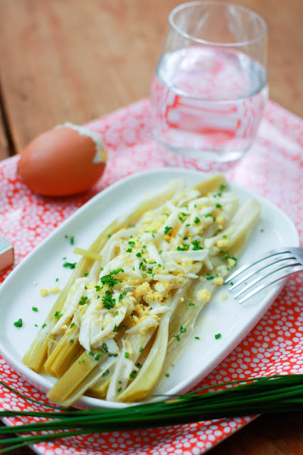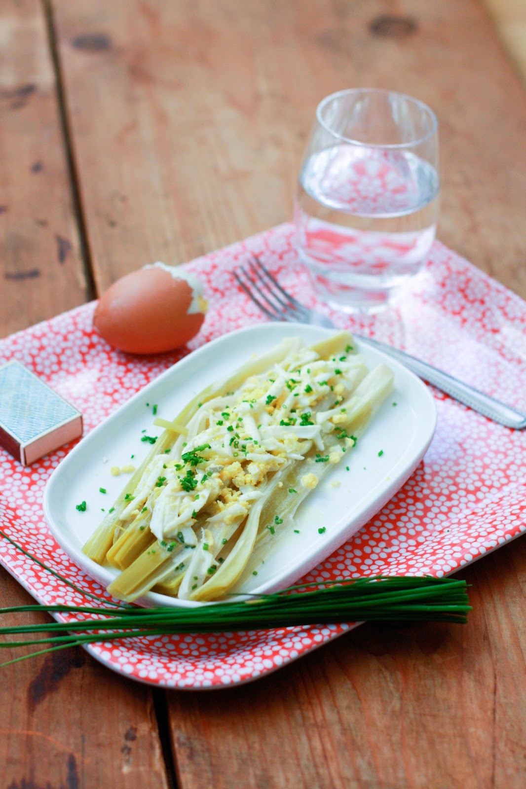 Déposez vos poireaux dans un plat, puis à l’aide de votre râpe à gros trous, râpez vos oeufs durs au dessus des poireaux. Verser la vinaigrette et parsemez de ciboulette ciselée.
