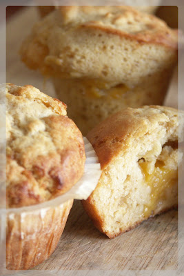 Au final : Muffins doux et croustillants, l’huile d’olive y donne une note arômatique à tomber et le coeur de pêche est une charmante surprise (quand ce dernier à bien voulu rester emprisonné !) 🙂