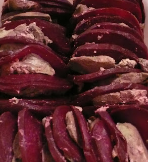 Coupez les foies et les betteraves en tranches aussi fines que possible.