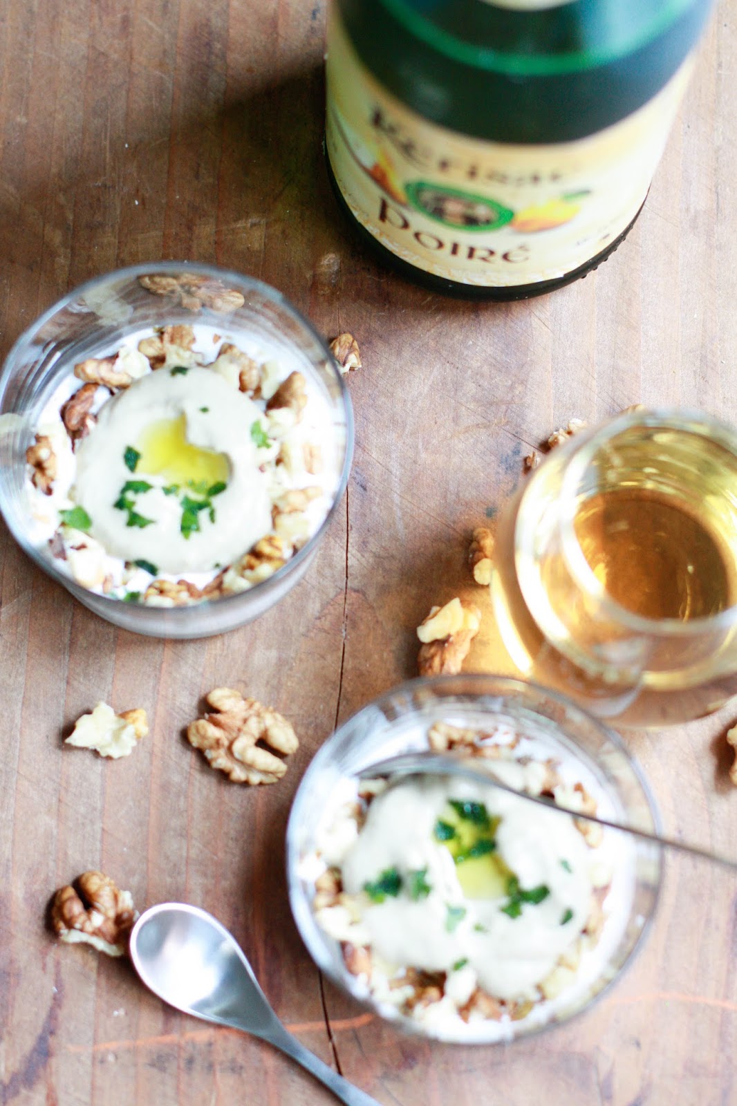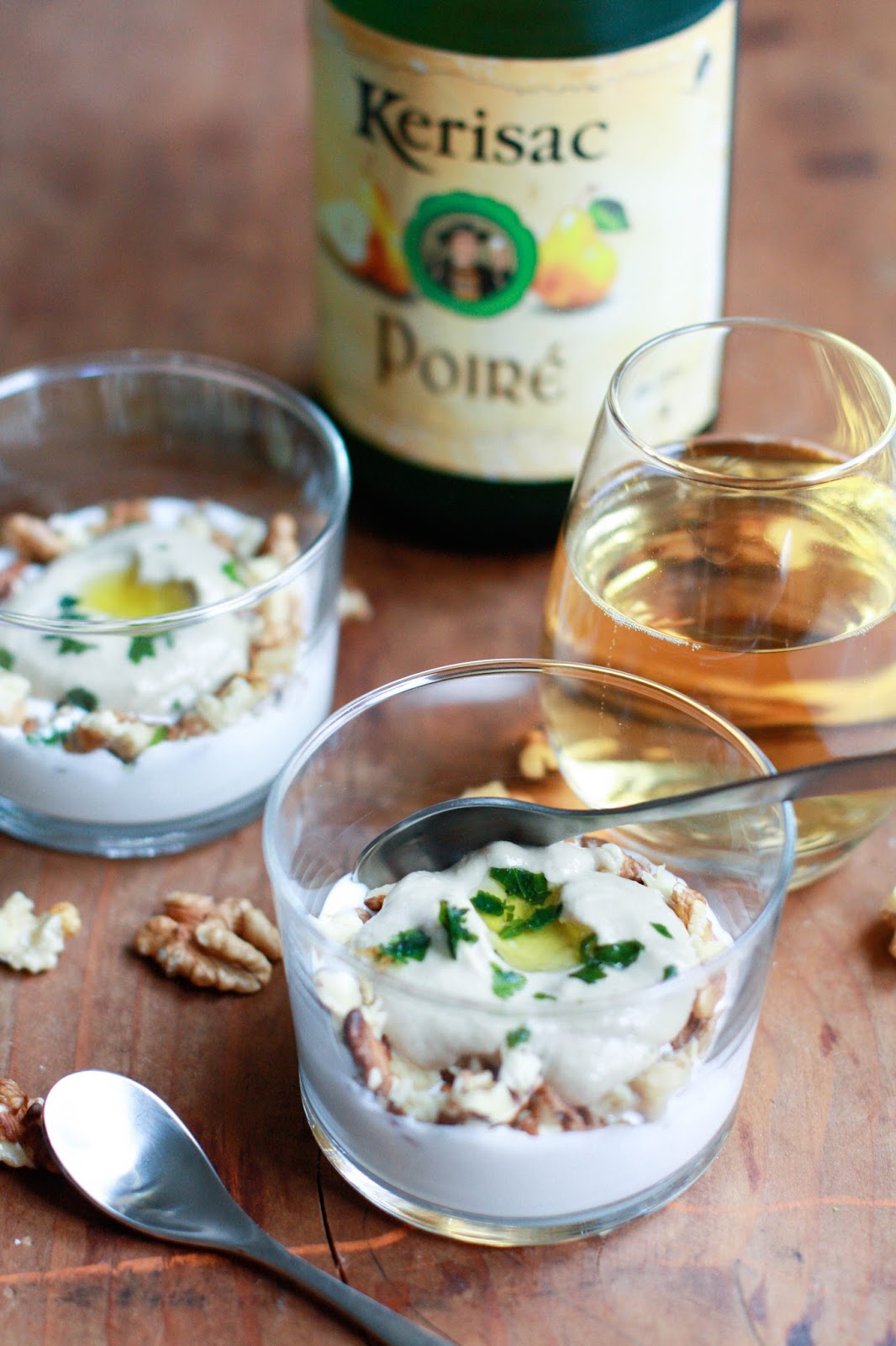 Le poiré c’est le cidre que je préfère – et même s’il se boit très très bien tout seul (quoi?) je voulais le challenger un peu avec une verrine pleine de saveur et de peps !