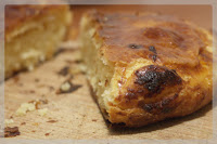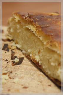 Dessiner au couteau dessus et dorer au jaune d’oeuf (dilué dans un peu d’eau). Percer le dessus de petits trous pour laisser l’air s’échapper, sinon elle risque de gonfler et de se dessécher.